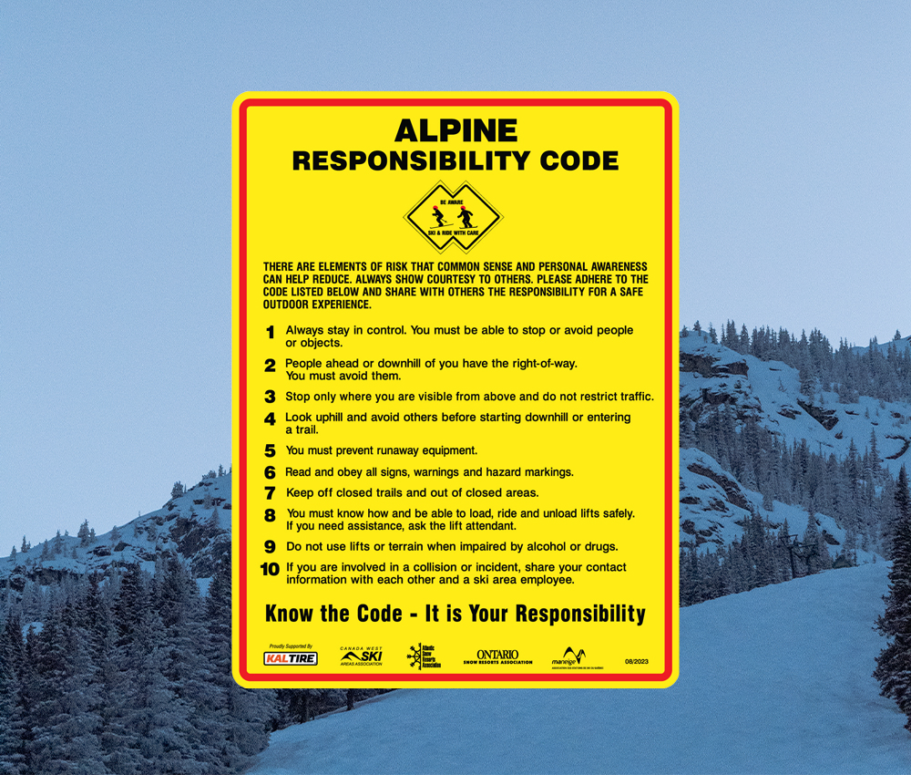 Know the rules of the mountain! Follow the Alpine Responsibility Code to keep yourself and others safe while enjoying the slopes.
